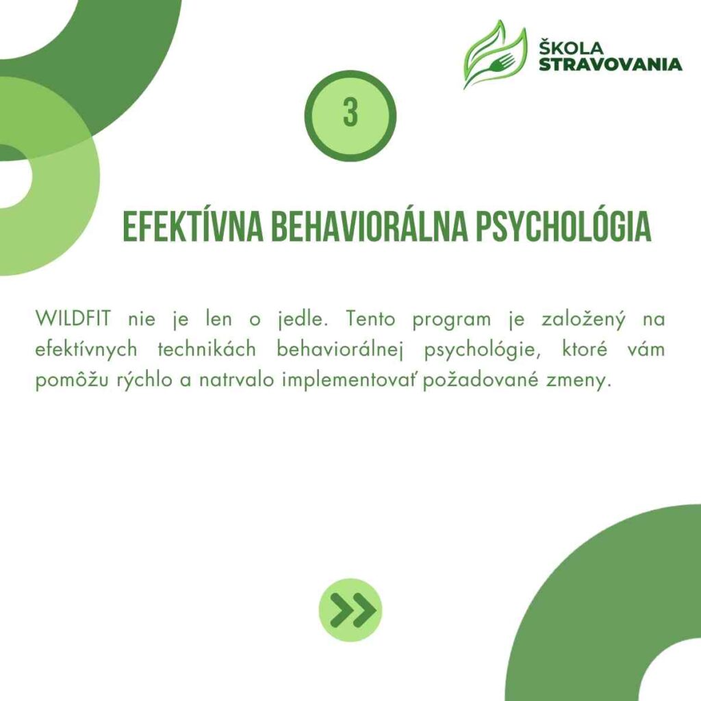 WILDFIT nie je len o jedle. Tento program je založený na efektívnych technikách behaviorálnej psychológie, ktoré vám pomôžu rýchlo a natrvalo implementovať požadované zmeny.
