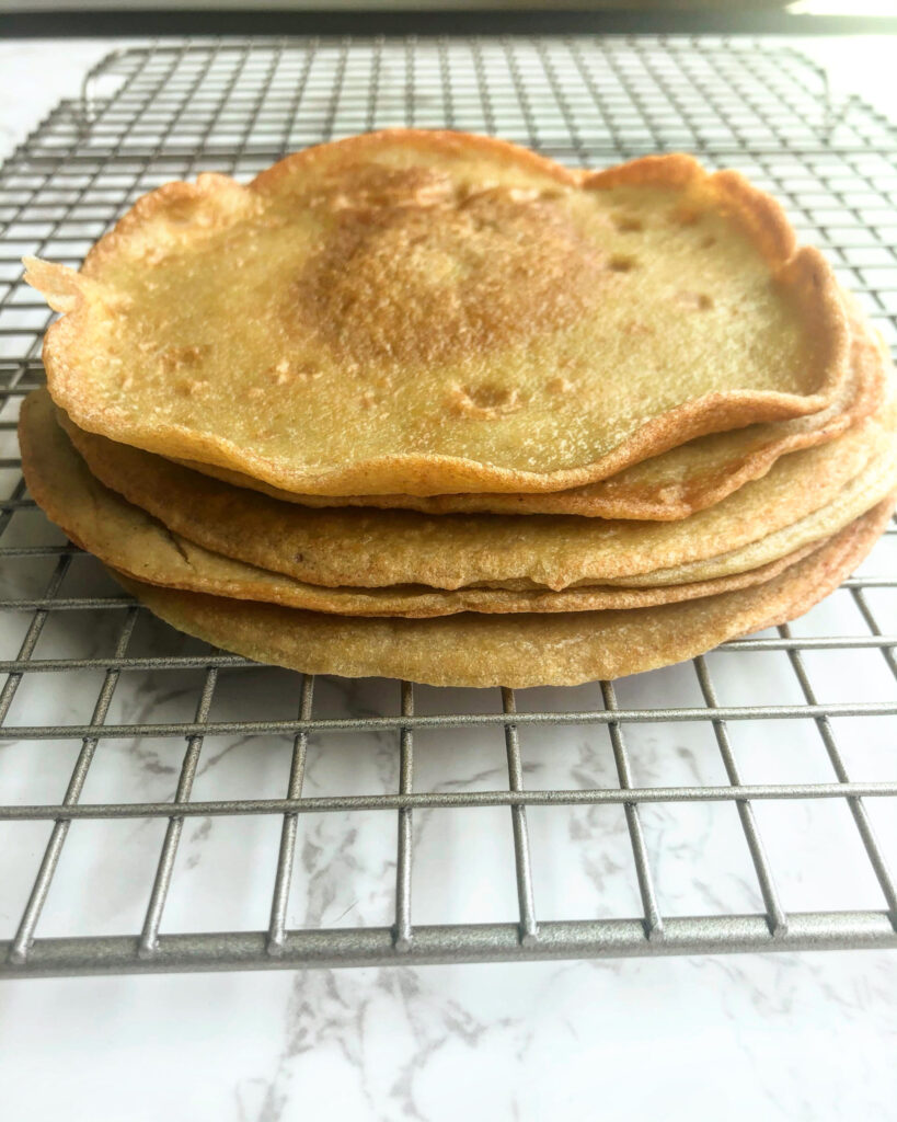 - Pečenie tortill. Na panvici rozohrejeme trochu ghí a cesto na tortilly pečieme z každej strany do zlatista.
